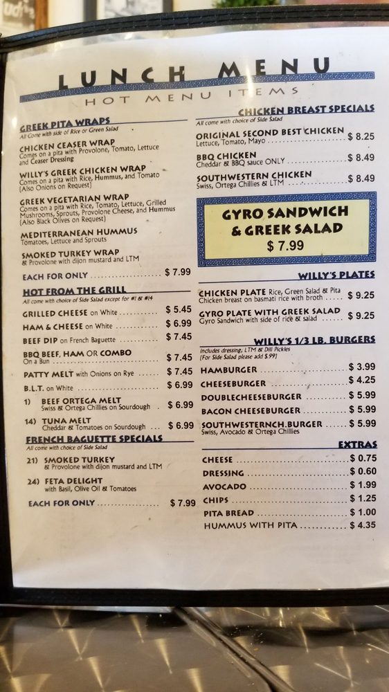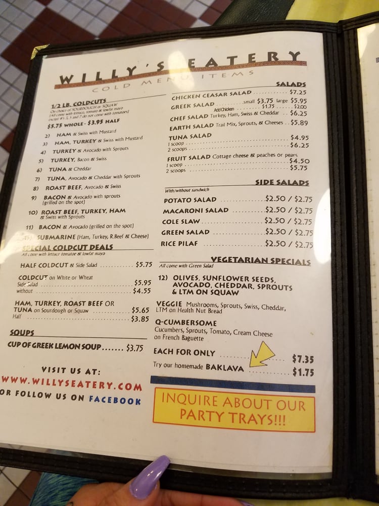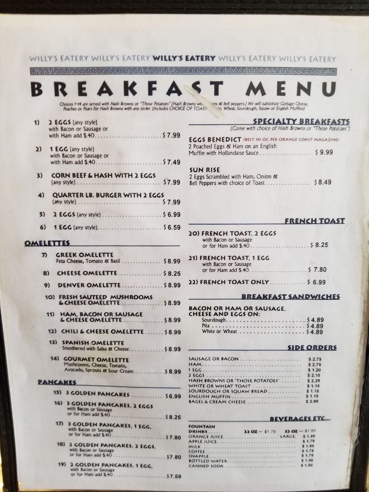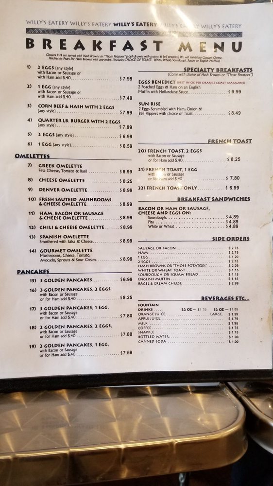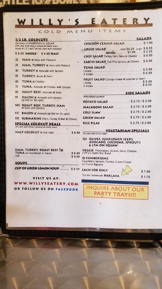 Willy’s Eatery Menu (Update 2025)